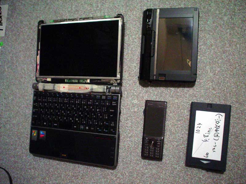 ●ナゴミ(LOOXT70KN改) 10.6インチ(1280×768) ドットサイズ=0.1796mm ●五二丸(アドエス) 3.0インチ(800×480) ドットサイズ=0.08125mm ●Uたん(LOOXUC30N) 5.6インチ(1280×800) ドットサイズ=0.09375mm ●ブルレー Vlilv S5 4.8インチ(1024×600) ドットサイズ=0.10253mm 使用感 >ナゴミ ・なんだかんだでオールマイティ ・昨今のネットブックより全然つかえる(Pentium M 最高、Atomいらね ・ひざにおいても机上でもOK ・キーボード配列は標準 ・バッテリーが重い&どうにもならない ・本体の軽量化には成功(バッテリつけなければ1キロ切ってると思う ・購入より5年経過(そろそろHDDに注意 ・液晶・ドットサイズに慣れ親しんだ ・ゆえに、ノート型でこれ以下の解像度は受け入れられない。 ・映像再生に強い ・willcom W-OAM 通信規格(カード×4)対応(ニコ動のエコノミー程度ならリアルタイム再生可能) ・衝撃にもろい(特にヒンジ部 >Uたん ・ひざにおいて使うのはほぼ不可能(ドット細かすぎで見えない ・机上でもきつい(理由は同上 ・タッチパネル操作も難 ・片手で持ち続けけるには重い(約560g) ・いっそキーボード無くてもいい(特殊&小さいで使えない ・起動・復帰が遅い ・動画再生に難あり(Atom〇ね ・CFカード形PHSに対応せず(形状は合っても一切使えない ・…ほんとダメだ >五二丸 ・ウィンドウズモバイル機(6.0) ・Wi-Fi標準内臓 ・ワイヤレスゲート&専用プログラムが結構使える(月380円) ・ニコ動&youtube(PC用)が見れない(DLしたFLVなどは再生できる ・ドットは最小だが特に困らない ・軽い・片手操作が苦にならない(157グラム ・動作がもたつく ・動画再生には意外と使える ・データ通信使い放題は無駄だと思う。 ・PHSカードと2回線もちだと基本料700円引き/月 >Vlilv S5 ・購入検討中